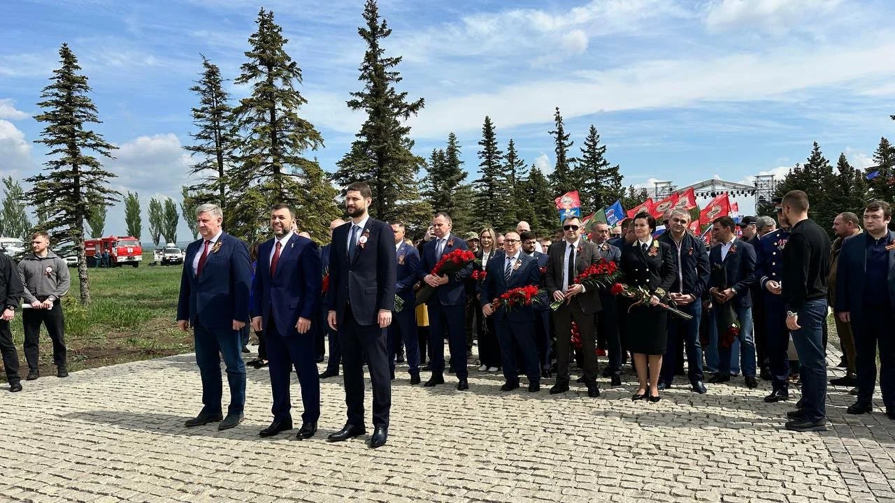 Глава Донецкой Народной Республики Денис Пушилин, сенатор Александр Волошин и депутаты Народного Совета ДНР вместе с жителями республики приняли участие в торжественных мероприятиях у мемориального комплекса «Саур Могила».